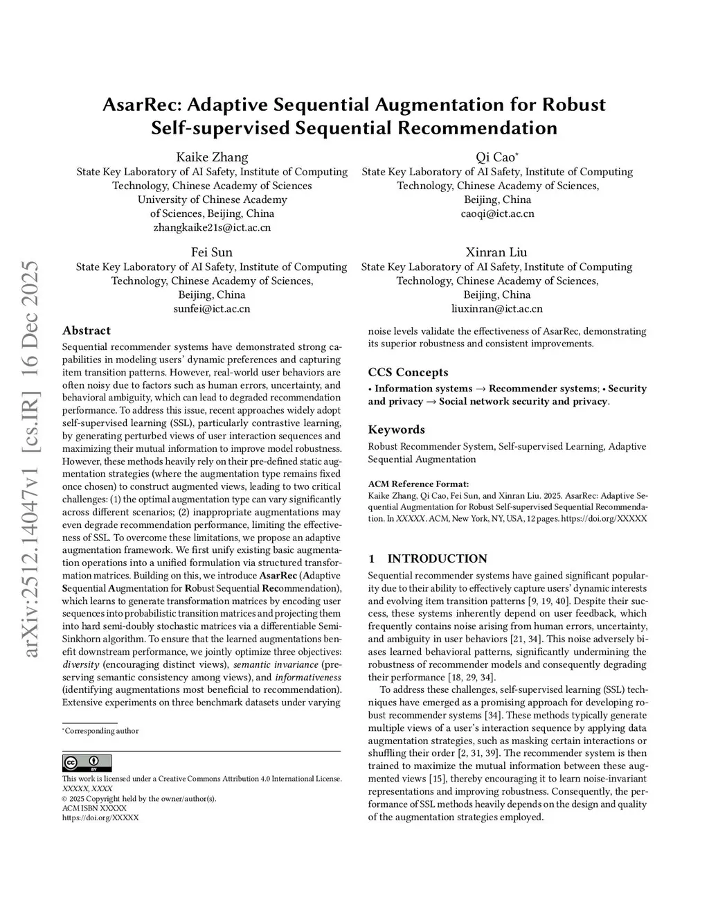 AsarRec: Adaptive Sequential Augmentation for Robust Self-supervised Sequential Recommendation