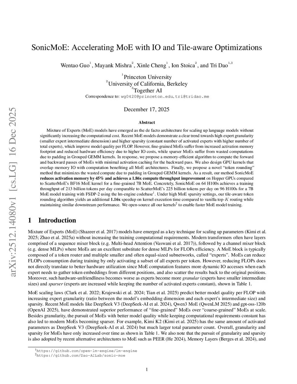 SonicMoE: Accelerating MoE with IO and Tile-aware Optimizations
