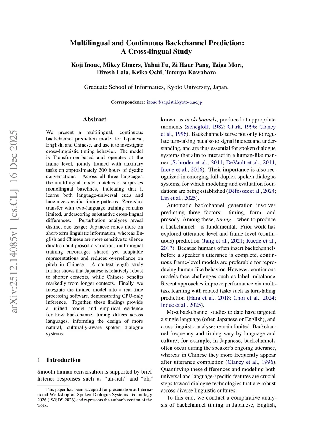 Multilingual and Continuous Backchannel Prediction: A Cross-lingual Study