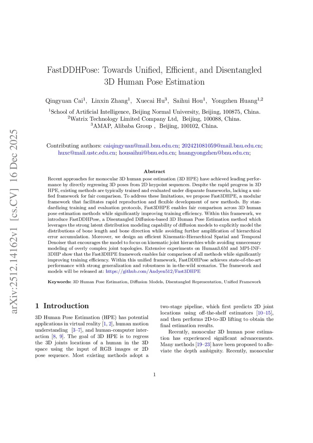 FastDDHPose: Towards Unified, Efficient, and Disentangled 3D Human Pose Estimation
