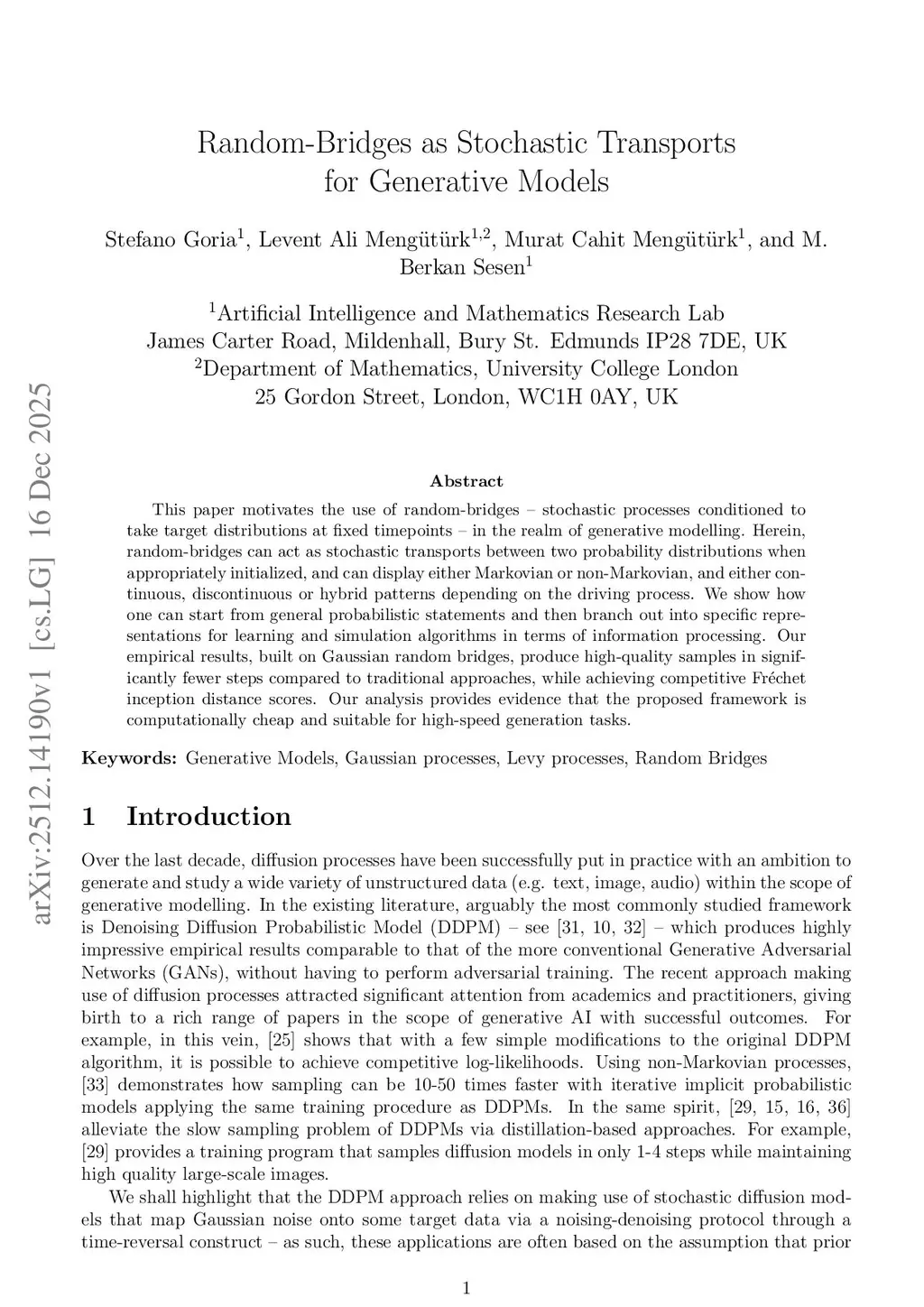 This paper motivates the use of random-bridges -- stochastic processes conditioned to take target distributions at fixed timepoints -- in the realm of generative modelling. Herein, random-bridges can act as stochastic transports between two probability distributions when appropriately initialized, and can display either Markovian or non-Markovian, and either continuous, discontinuous or hybrid patterns depending on the driving process. We show how one can start from general probabilistic statements and then branch out into specific representations for learning and simulation algorithms in terms of information processing. Our empirical results, built on Gaussian random bridges, produce high-quality samples in significantly fewer steps compared to traditional approaches, while achieving competitive Frechet inception distance scores. Our analysis provides evidence that the proposed framework is computationally cheap and suitable for high-speed generation tasks.