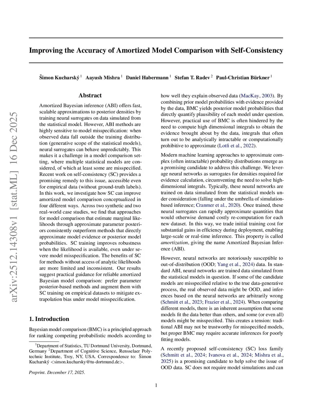 Improving the Accuracy of Amortized Model Comparison with Self-Consistency