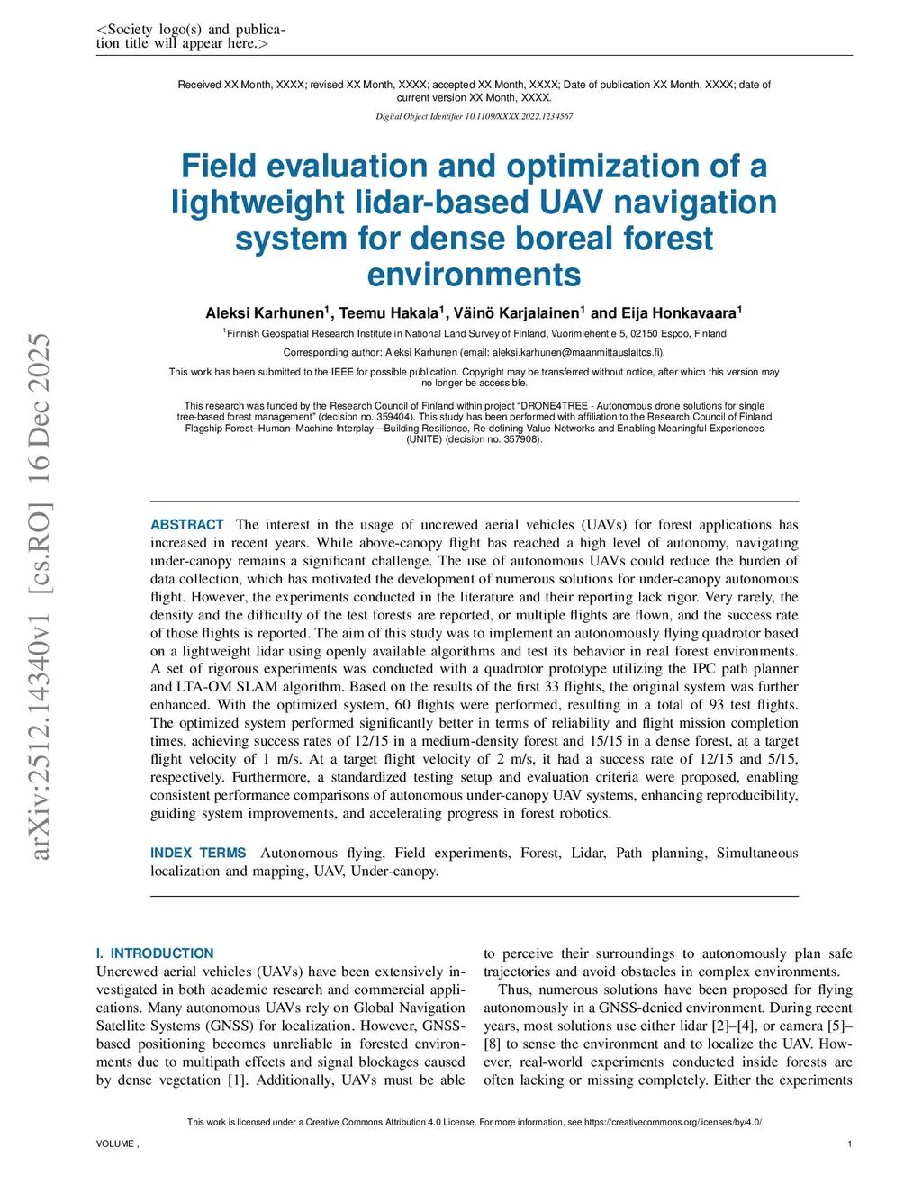 Field evaluation and optimization of a lightweight autonomous lidar-based UAV system based on a rigorous experimental setup in boreal forest environments