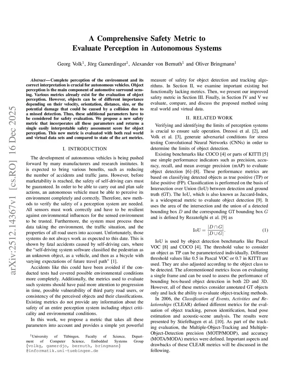 A Comprehensive Safety Metric to Evaluate Perception in Autonomous Systems
