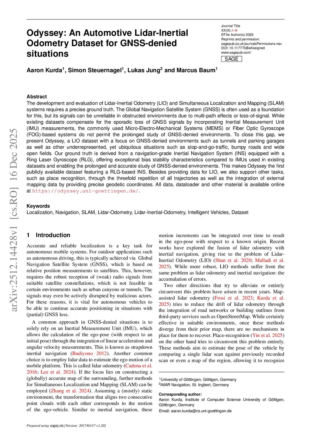 Odyssey: An Automotive Lidar-Inertial Odometry Dataset for GNSS-denied situations