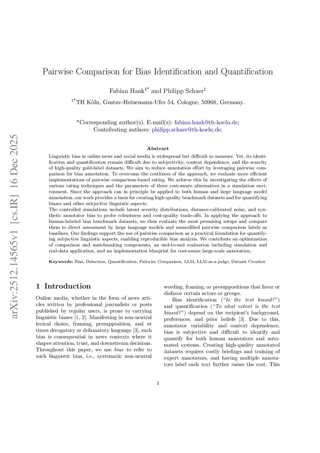 Linguistic bias in online news and social media is widespread but difficult to measure. Yet, its identification and quantification remain difficult due to subjectivity, context dependence, and the scarcity of high-quality gold-label datasets. We aim to reduce annotation effort by leveraging pairwise comparison for bias annotation. To overcome the costliness of the approach, we evaluate more efficient implementations of pairwise comparison-based rating. We achieve this by investigating the effects of various rating techniques and the parameters of three cost-aware alternatives in a simulation environment. Since the approach can in principle be applied to both human and large language model annotation, our work provides a basis for creating high-quality benchmark datasets and for quantifying biases and other subjective linguistic aspects.The controlled simulations include latent severity distributions, distance-calibrated noise, and synthetic annotator bias to probe robustness and cost-quality trade-offs. In applying the approach to human-labeled bias benchmark datasets, we then evaluate the most promising setups and compare them to direct assessment by large language models and unmodified pairwise comparison labels as baselines. Our findings support the use of pairwise comparison as a practical foundation for quantifying subjective linguistic aspects, enabling reproducible bias analysis. We contribute an optimization of comparison and matchmaking components, an end-to-end evaluation including simulation and real-data application, and an implementation blueprint for cost-aware large-scale annotation