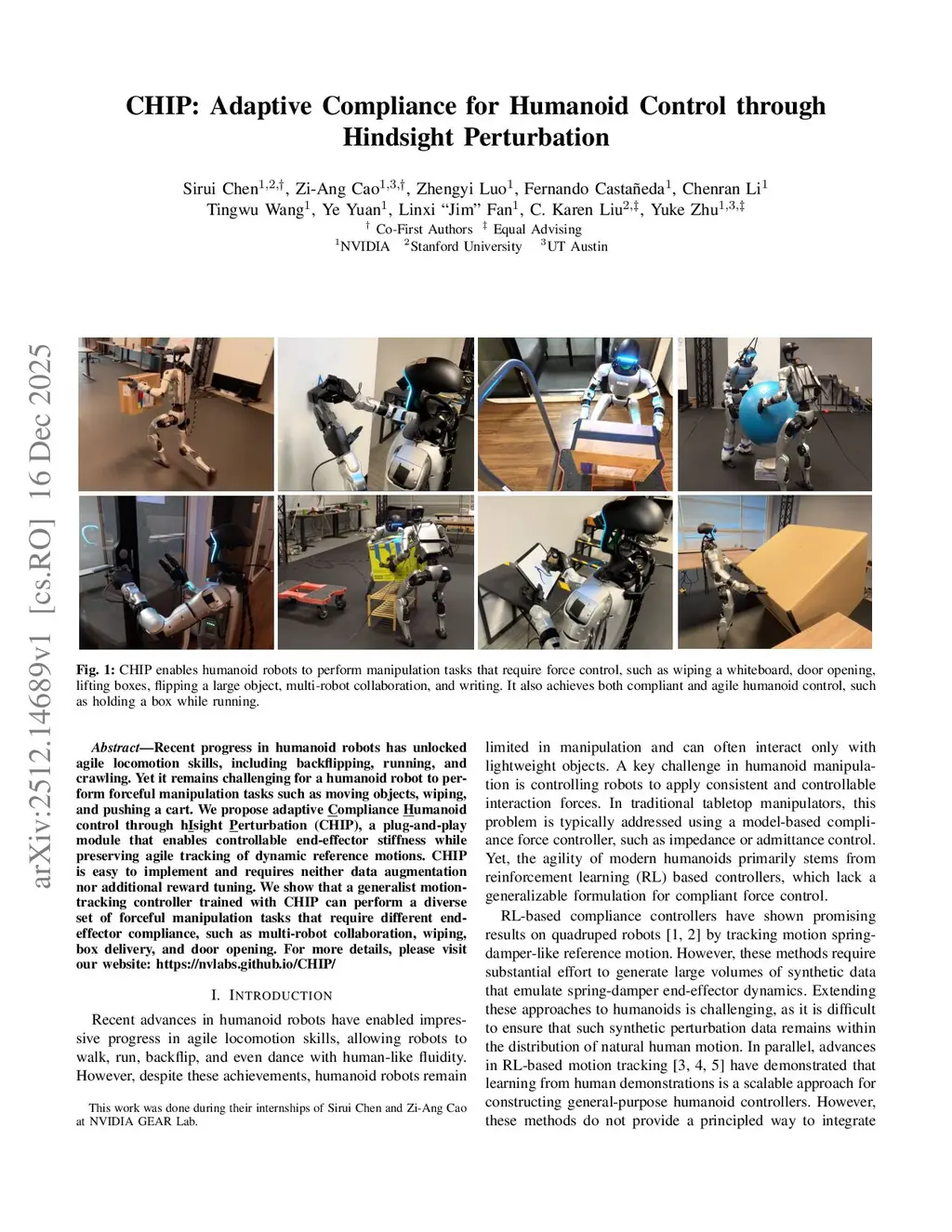 CHIP: Adaptive Compliance for Humanoid Control through Hindsight Perturbation