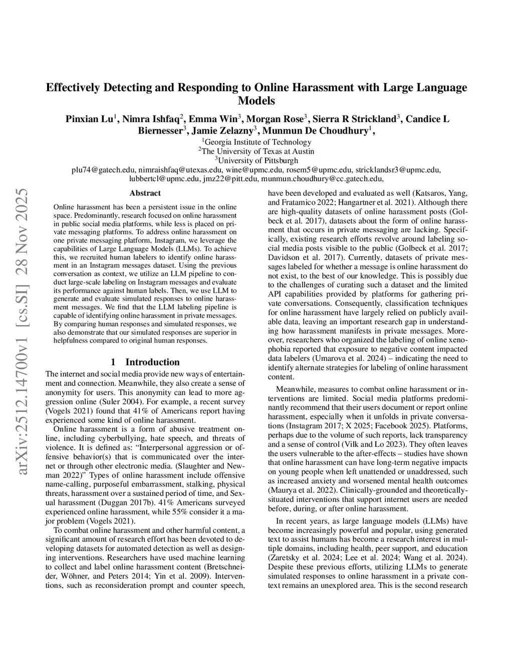 Effectively Detecting and Responding to Online Harassment with Large Language Models