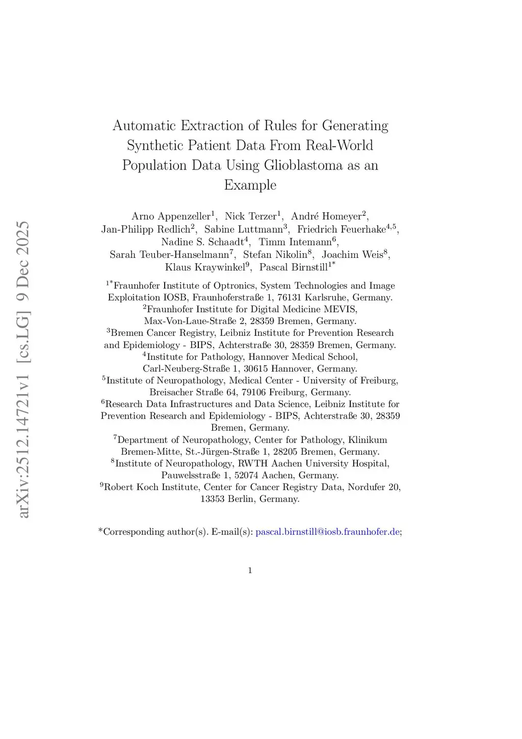 Automatic Extraction of Rules for Generating Synthetic Patient Data From Real-World Population Data Using Glioblastoma as an Example