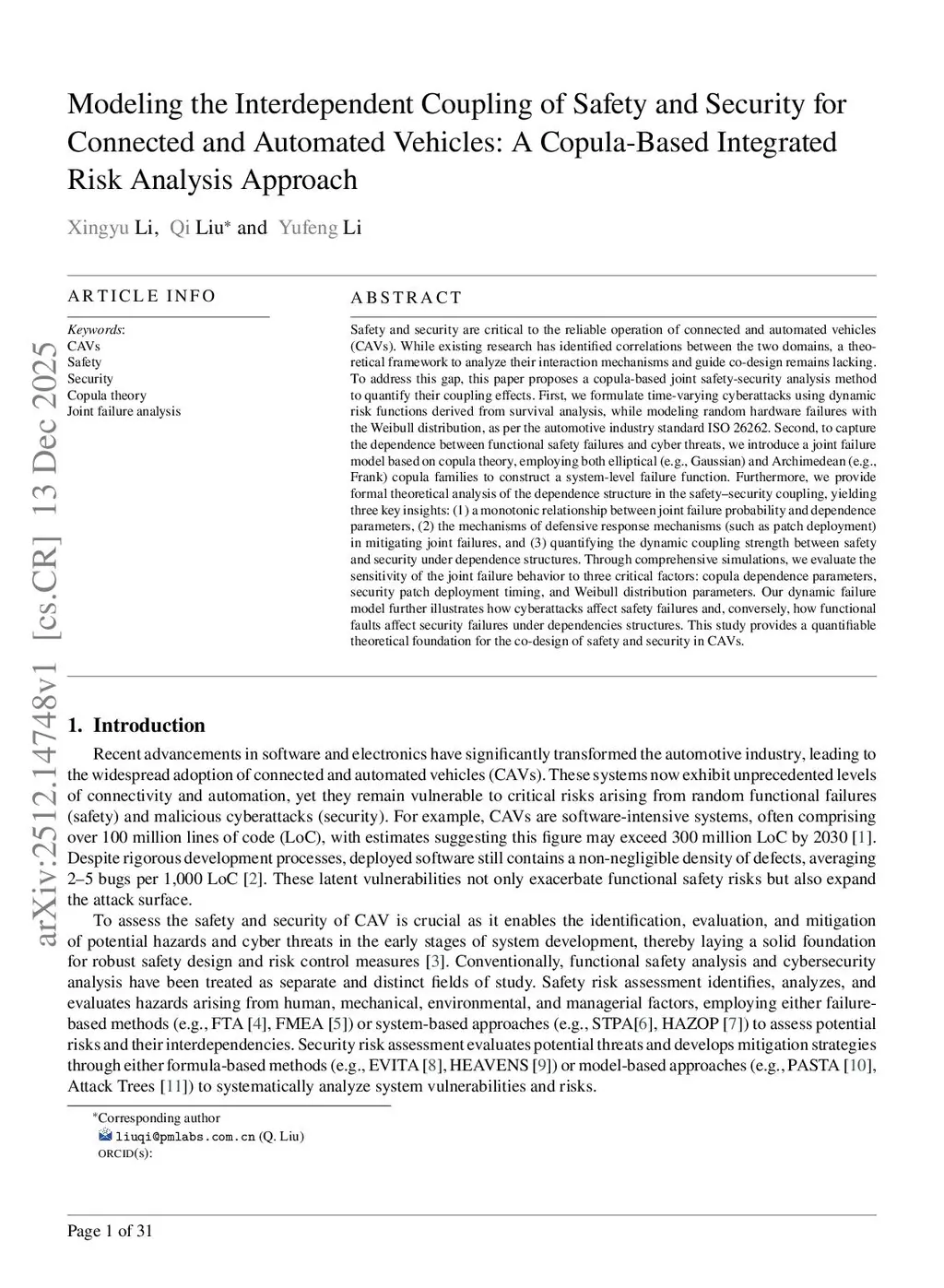 Modeling the Interdependent Coupling of Safety and Security for Connected and Automated Vehicles: A Copula-Based Integrated Risk Analysis Approach
