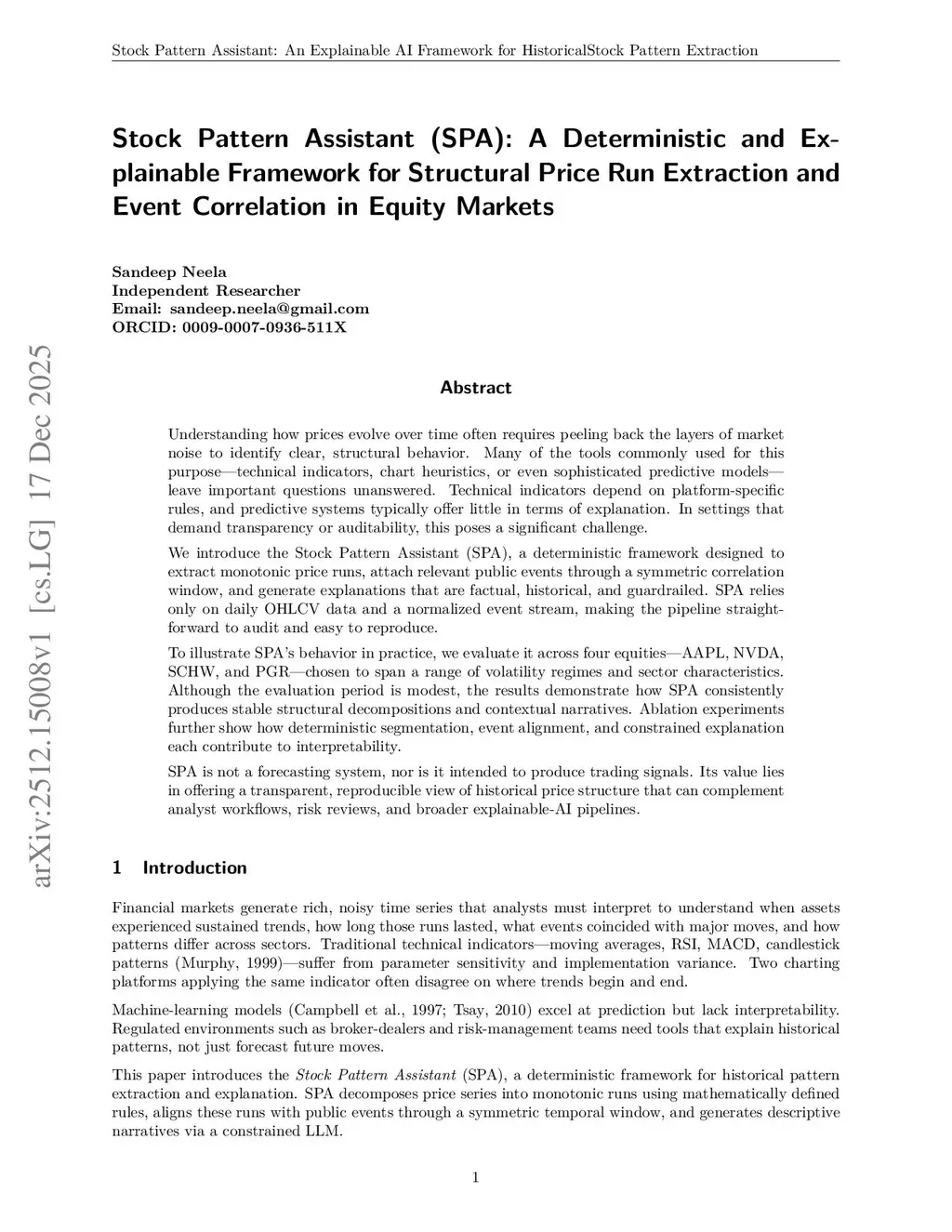 Stock Pattern Assistant (SPA): A Deterministic and Explainable Framework for Structural Price Run Extraction and Event Correlation in Equity Markets