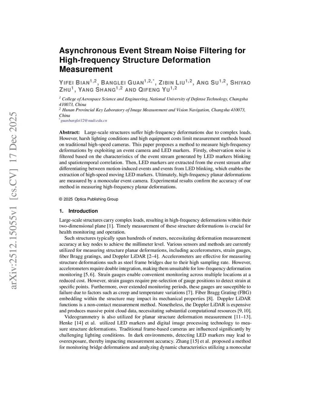 Asynchronous Event Stream Noise Filtering for High-frequency Structure Deformation Measurement
