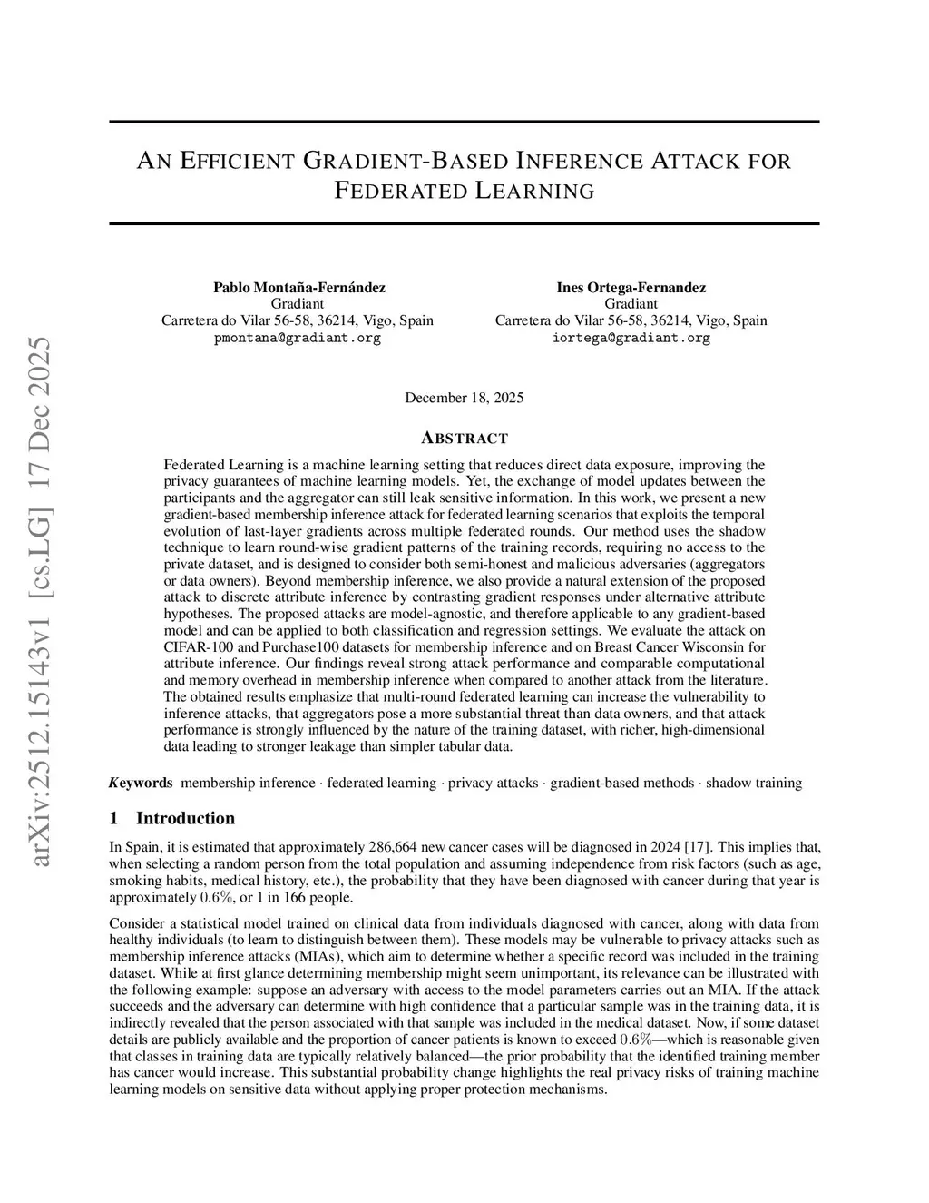 An Efficient Gradient-Based Inference Attack for Federated Learning