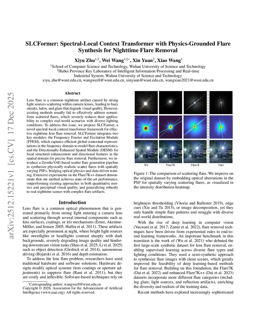 SLCFormer: Spectral-Local Context Transformer with Physics-Grounded Flare Synthesis for Nighttime Flare Removal