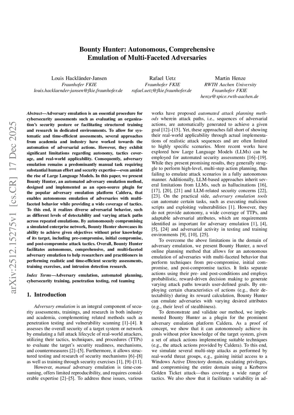 Bounty Hunter: Autonomous, Comprehensive Emulation of Multi-Faceted Adversaries
