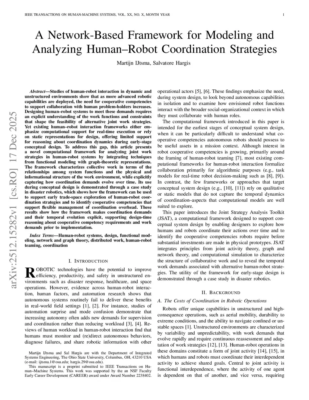 Studies of human-robot interaction in dynamic and unstructured environments show that as more advanced robotic capabilities are deployed, the need for cooperative competencies to support collaboration with human problem-holders increases. Designing human-robot systems to meet these demands requires an explicit understanding of the work functions and constraints that shape the feasibility of alternative joint work strategies. Yet existing human-robot interaction frameworks either emphasize computational support for real-time execution or rely on static representations for design, offering limited support for reasoning about coordination dynamics during early-stage conceptual design. To address this gap, this article presents a novel computational framework for analyzing joint work strategies in human-robot systems by integrating techniques from functional modeling with graph-theoretic representations. The framework characterizes collective work in terms of the relationships among system functions and the physical and informational structure of the work environment, while explicitly capturing how coordination demands evolve over time. Its use during conceptual design is demonstrated through a case study in disaster robotics, which shows how the framework can be used to support early trade-space exploration of human-robot coordination strategies and to identify cooperative competencies that support flexible management of coordination overhead. These results show how the framework makes coordination demands and their temporal evolution explicit, supporting design-time reasoning about cooperative competency requirements and work demands prior to implementation.