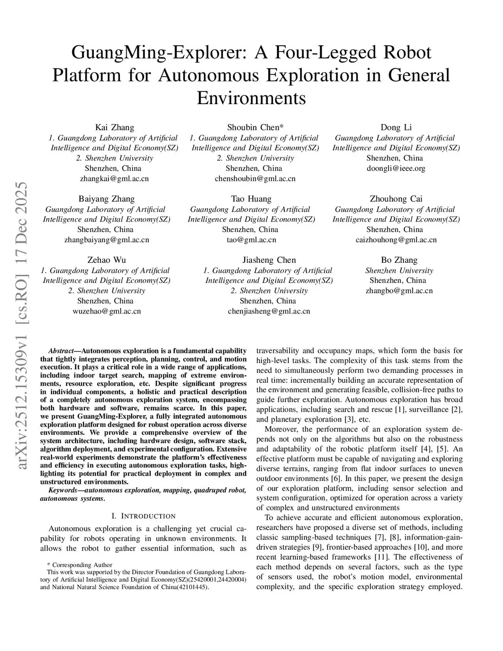 GuangMing-Explorer: A Four-Legged Robot Platform for Autonomous Exploration in General Environments