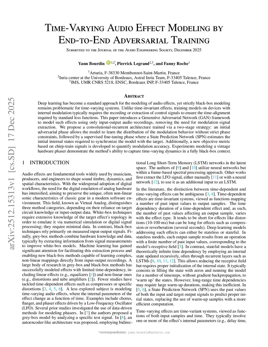 Time-Varying Audio Effect Modeling by End-to-End Adversarial Training