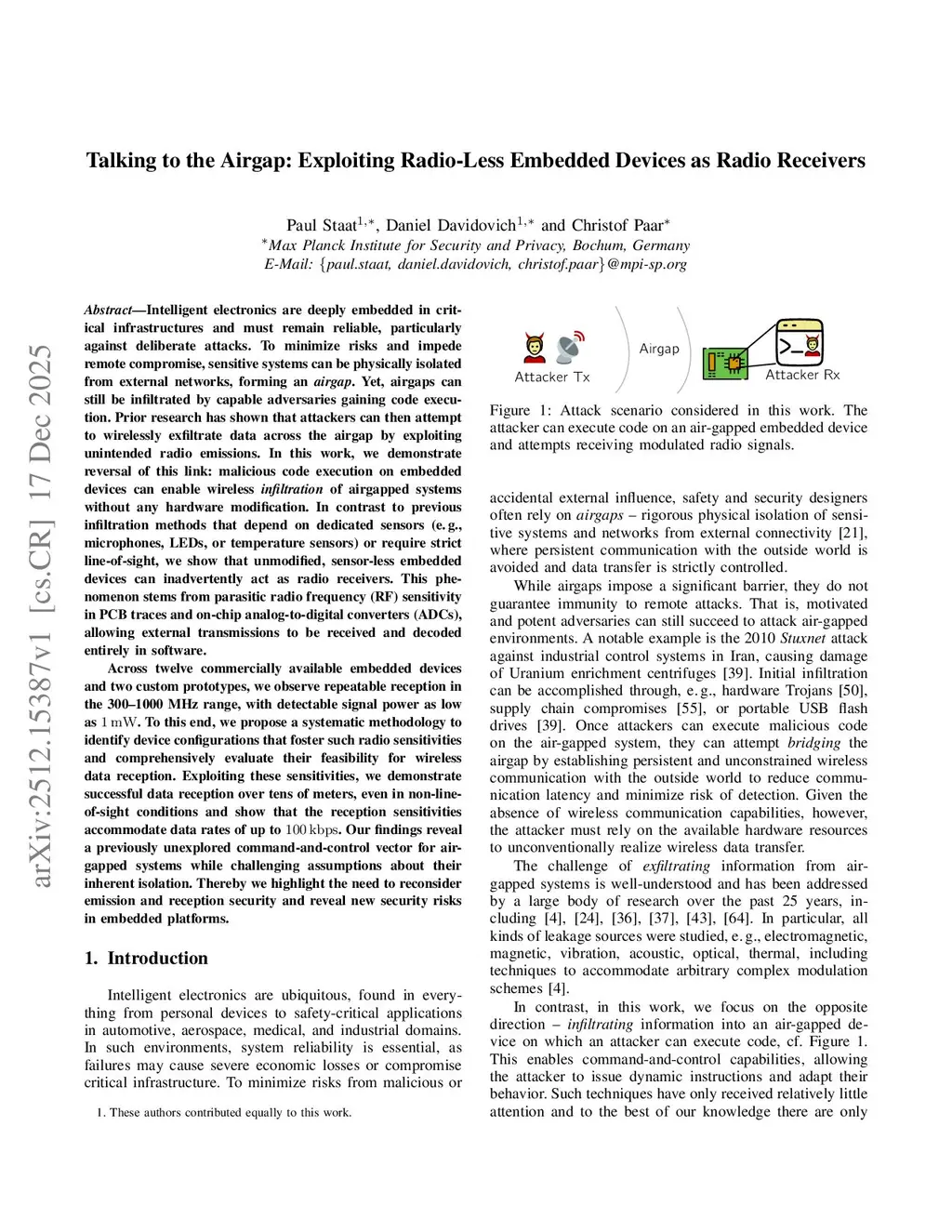 Talking to the Airgap: Exploiting Radio-Less Embedded Devices as Radio Receivers
