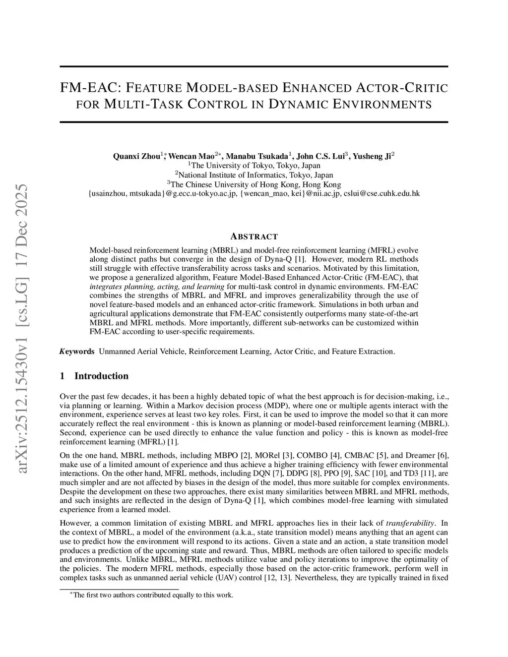 Model-based reinforcement learning (MBRL) and model-free reinforcement learning (MFRL) evolve along distinct paths but converge in the design of Dyna-Q [1]. However, modern RL methods still struggle with effective transferability across tasks and scenarios. Motivated by this limitation, we propose a generalized algorithm, Feature Model-Based Enhanced Actor-Critic (FM-EAC), that integrates planning, acting, and learning for multi-task control in dynamic environments. FM-EAC combines the strengths of MBRL and MFRL and improves generalizability through the use of novel feature-based models and an enhanced actor-critic framework. Simulations in both urban and agricultural applications demonstrate that FM-EAC consistently outperforms many state-of-the-art MBRL and MFRL methods. More importantly, different sub-networks can be customized within FM-EAC according to user-specific requirements.