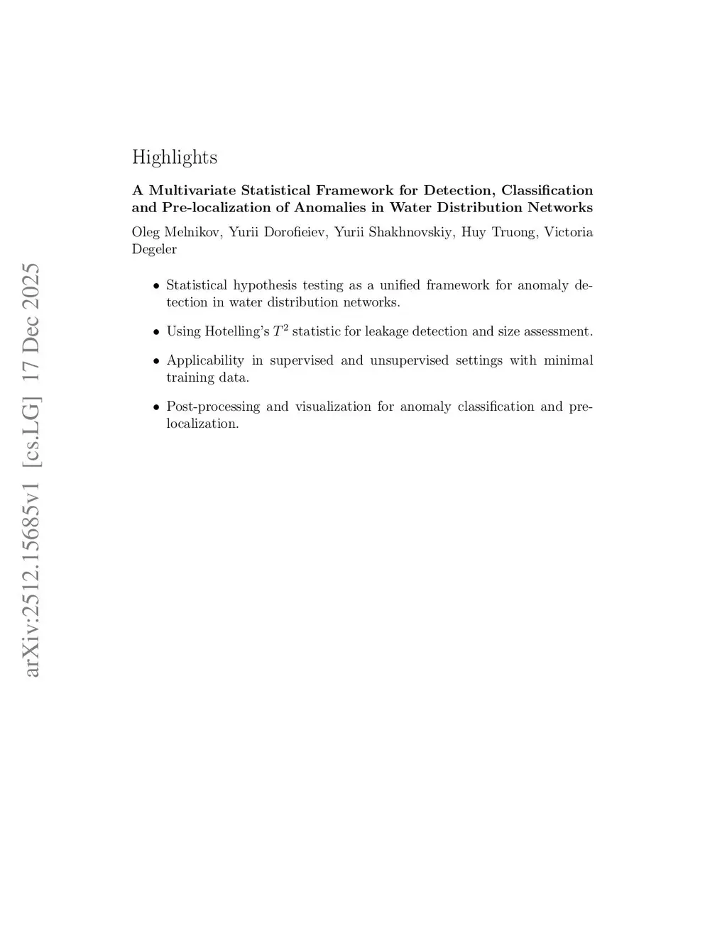 This paper presents a unified framework, for the detection, classification, and preliminary localization of anomalies in water distribution networks using multivariate statistical analysis. The approach, termed SICAMS (Statistical Identification and Classification of Anomalies in Mahalanobis Space), processes heterogeneous pressure and flow sensor data through a whitening transformation to eliminate spatial correlations among measurements. Based on the transformed data, the Hotelling's statistic is constructed, enabling the formulation of anomaly detection as a statistical hypothesis test of network conformity to normal operating conditions. It is shown that Hotelling's statistic can serve as an integral indicator of the overall "health" of the system, exhibiting correlation with total leakage volume, and thereby enabling approximate estimation of water losses via a regression model. A heuristic algorithm is developed to analyze the time series and classify detected anomalies into abrupt leaks, incipient leaks, and sensor malfunctions. Furthermore, a coarse leak localization method is proposed, which ranks sensors according to their statistical contribution and employs Laplacian interpolation to approximate the affected region within the network. Application of the proposed framework to the BattLeDIM L-Town benchmark dataset demonstrates high sensitivity and reliability in leak detection, maintaining robust performance even under multiple leaks. These capabilities make the method applicable to real-world operational environments without the need for a calibrated hydraulic model.