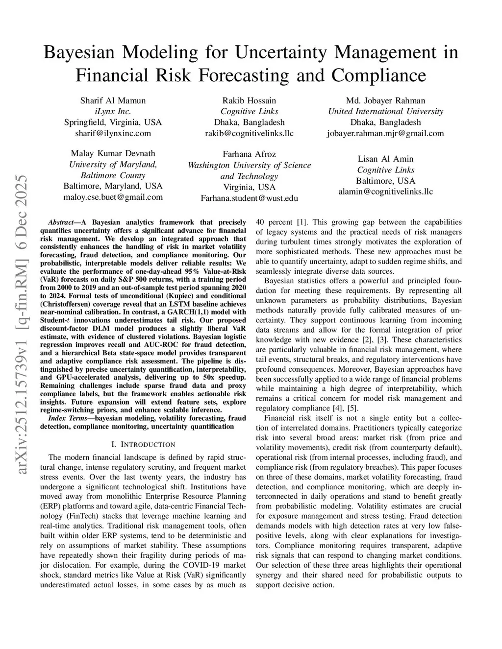 Bayesian Modeling for Uncertainty Management in Financial Risk Forecasting and Compliance
