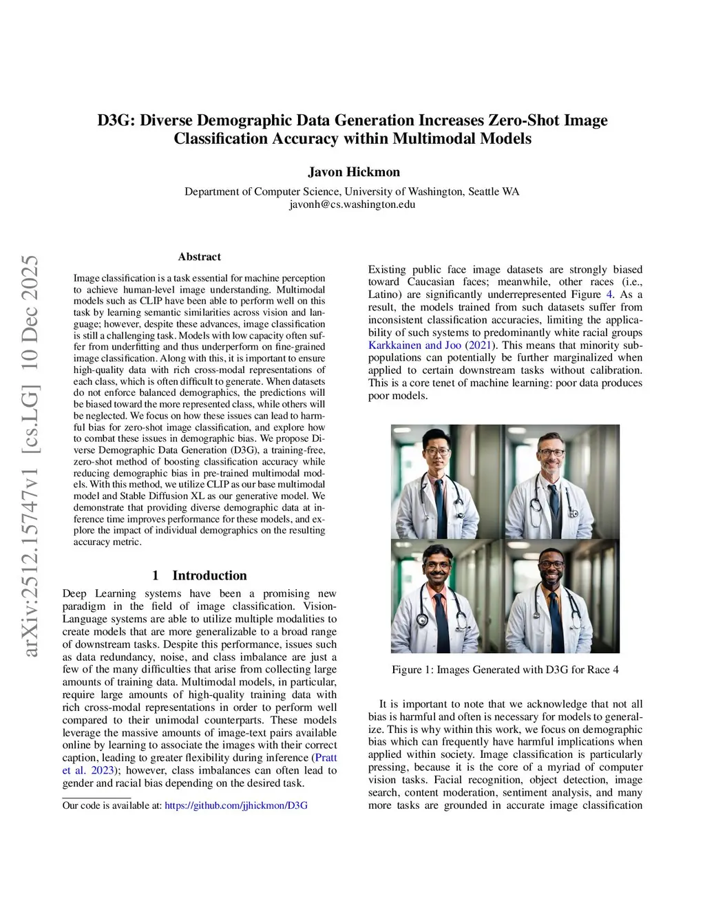 Image classification is a task essential for machine perception to achieve human-level image understanding. Multimodal models such as CLIP have been able to perform well on this task by learning semantic similarities across vision and language; however, despite these advances, image classification is still a challenging task. Models with low capacity often suffer from underfitting and thus underperform on fine-grained image classification. Along with this, it is important to ensure high-quality data with rich cross-modal representations of each class, which is often difficult to generate. When datasets do not enforce balanced demographics, the predictions will be biased toward the more represented class, while others will be neglected. We focus on how these issues can lead to harmful bias for zero-shot image classification, and explore how to combat these issues in demographic bias. We propose Diverse Demographic Data Generation (D3G), a training-free, zero-shot method of boosting classification accuracy while reducing demographic bias in pre-trained multimodal models. With this method, we utilize CLIP as our base multimodal model and Stable Diffusion XL as our generative model. We demonstrate that providing diverse demographic data at inference time improves performance for these models, and explore the impact of individual demographics on the resulting accuracy metric.