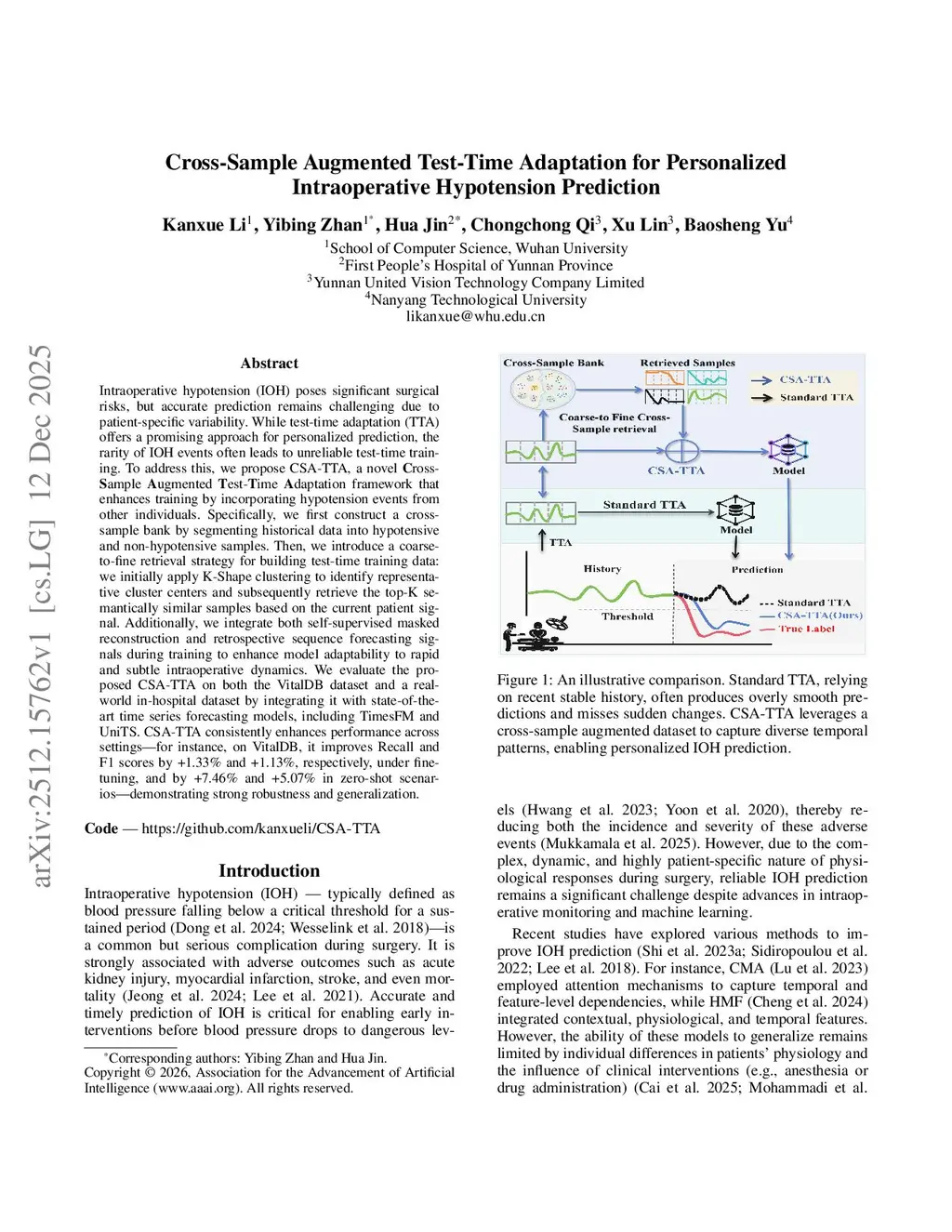 Cross-Sample Augmented Test-Time Adaptation for Personalized Intraoperative Hypotension Prediction