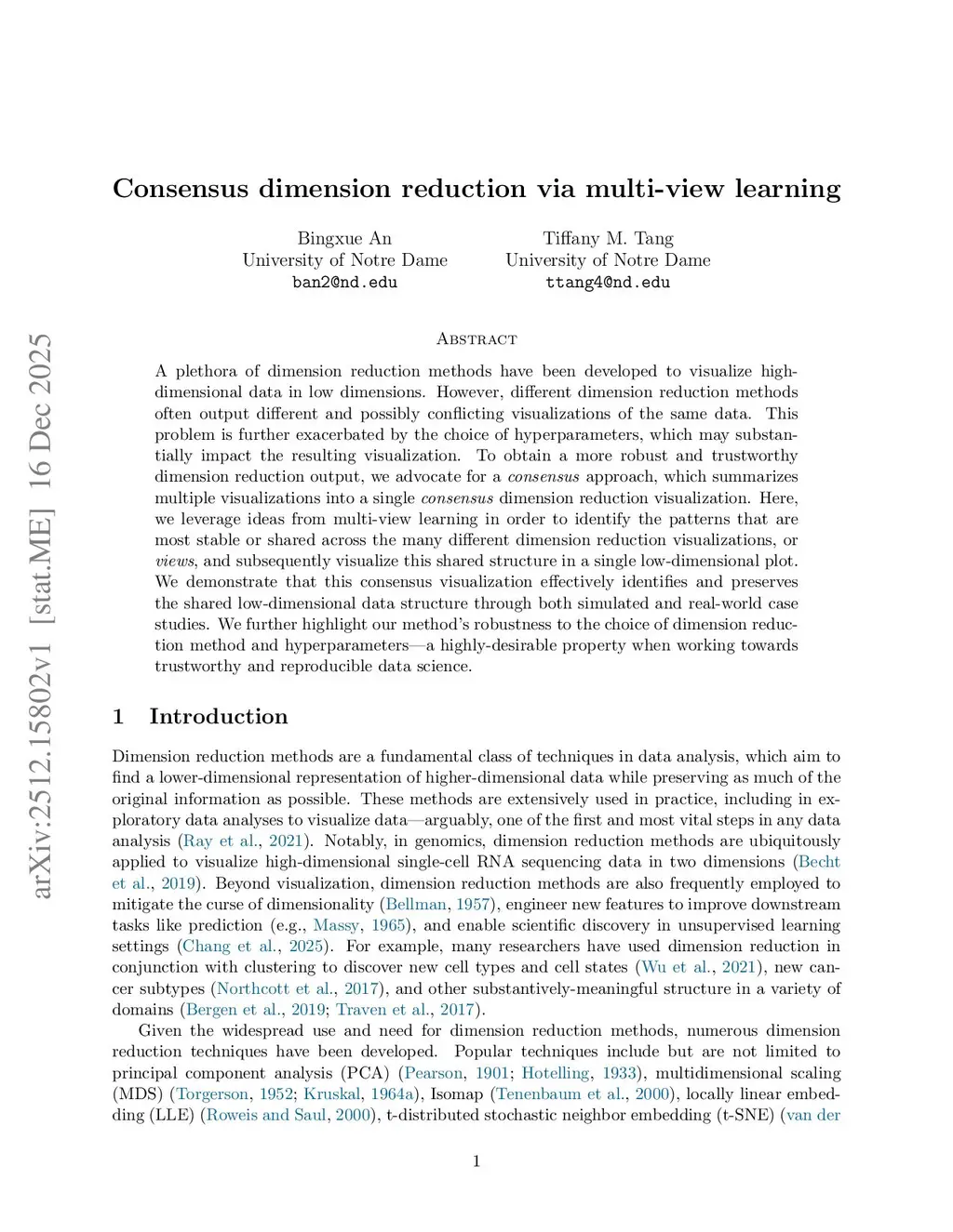 Consensus dimension reduction via multi-view learning