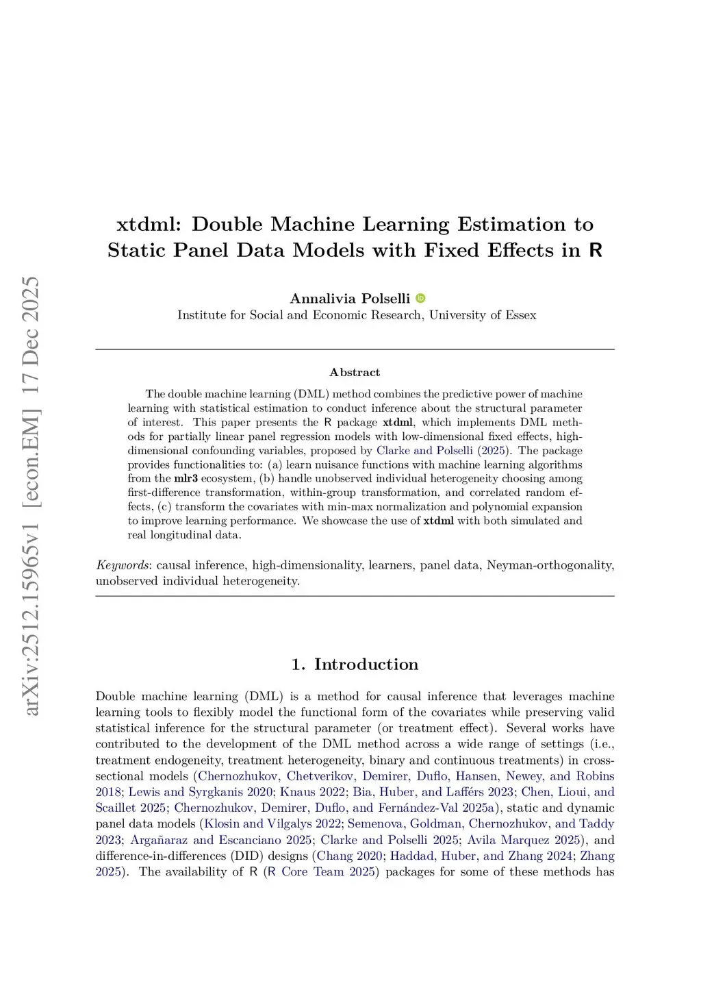 xtdml: Double Machine Learning Estimation to Static Panel Data Models with Fixed Effects in R