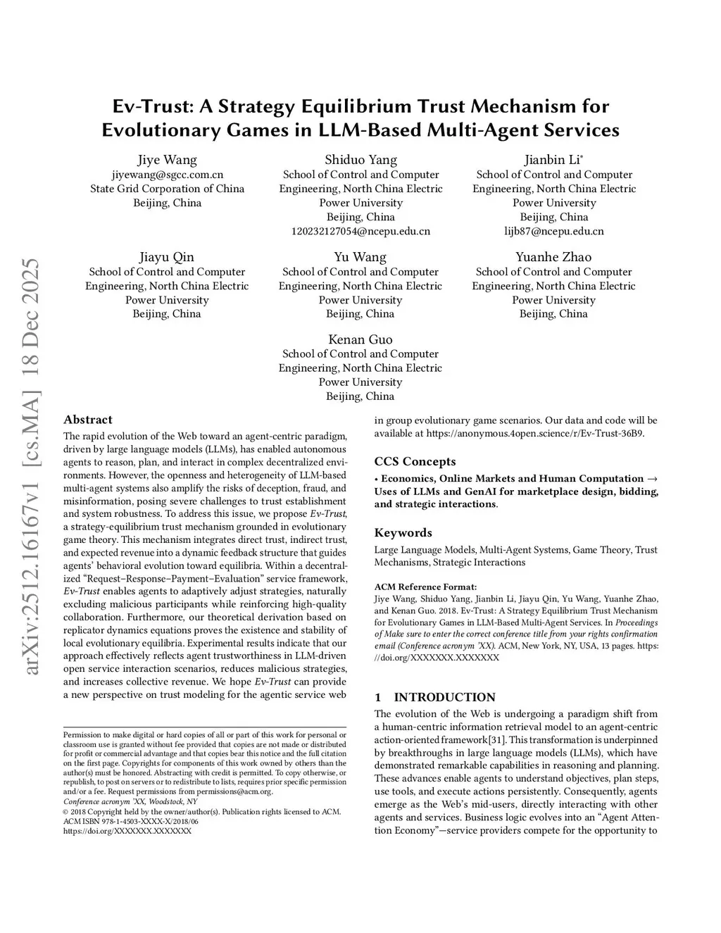 Autonomous LLM-based agents are increasingly engaging in decentralized service interactions to collaboratively execute complex tasks. However, the intrinsic instability and low-cost generativity of LLMs introduce a systemic vulnerability, where self-interested agents are incentivized to pursue short-term gains through deceptive behaviors. Such strategies can rapidly proliferate within the population and precipitate a systemic trust collapse. To address this, we propose Ev-Trust, a strategy-equilibrium trust mechanism grounded in evolutionary game theory. Ev-Trust constructs a dynamic feedback loop that couples trust evaluation with evolutionary incentives, embedding interaction history and reputation directly into the agent's expected revenue function. This mechanism fundamentally reshapes the revenue structure, converting trustworthiness into a decisive survival advantage that suppresses short-sightedness. We provide a rigorous theoretical foundation based on the Replicator Dynamics, proving the asymptotic stability of Evolutionary Stable Strategies (ESS) that favor cooperation. Experimental results indicate that Ev-Trust effectively eliminates malicious strategies and enhances collective revenue, exhibiting resilience against the invasion of mutant behaviors.