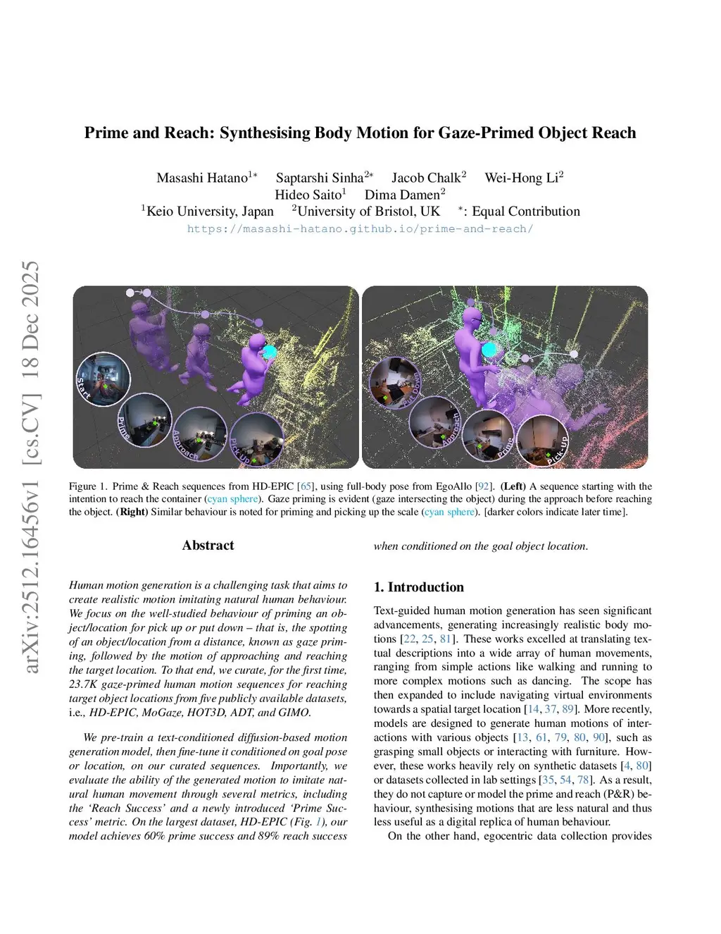 Prime and Reach: Synthesising Body Motion for Gaze-Primed Object Reach