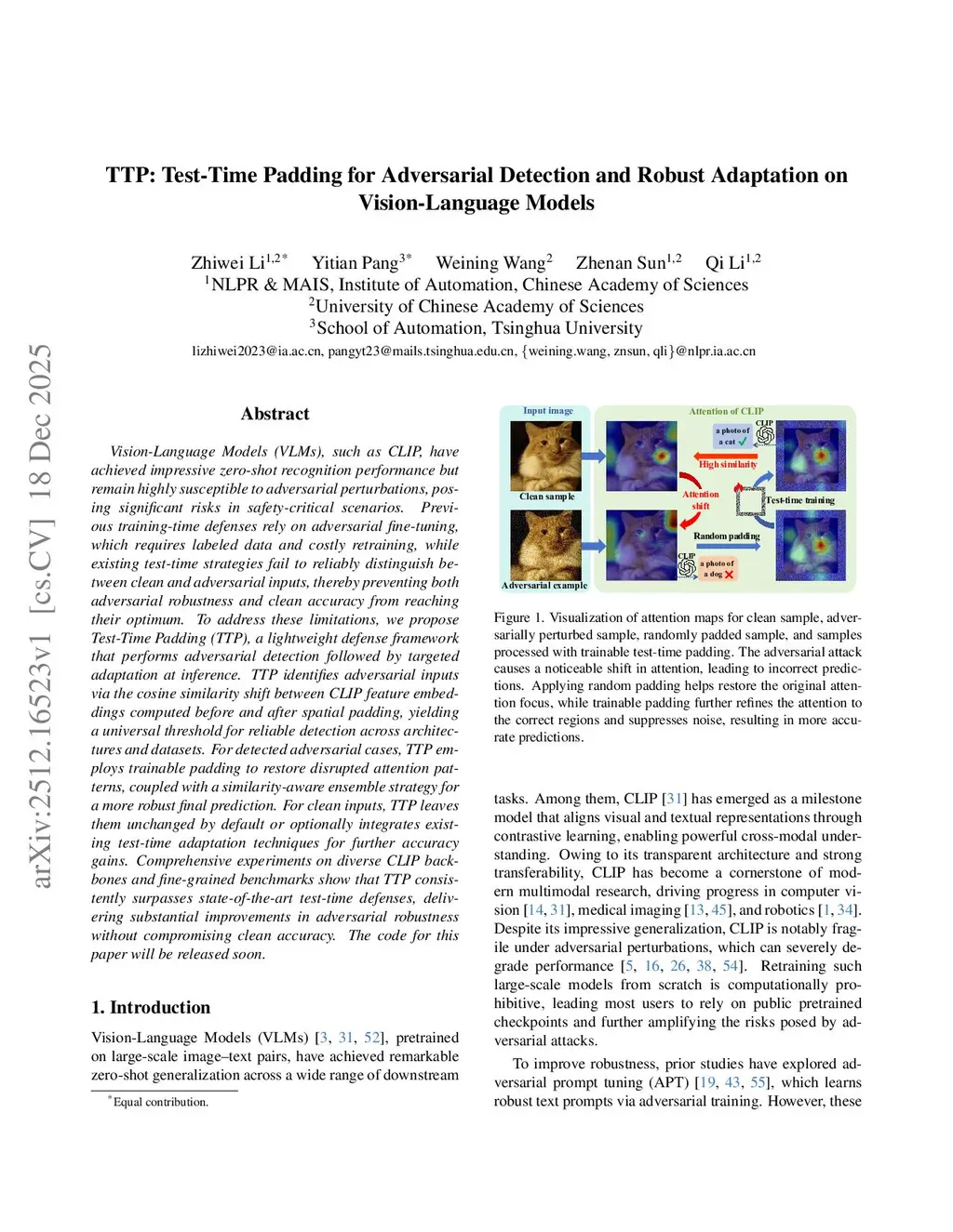 TTP: Test-Time Padding for Adversarial Detection and Robust Adaptation on Vision-Language Models