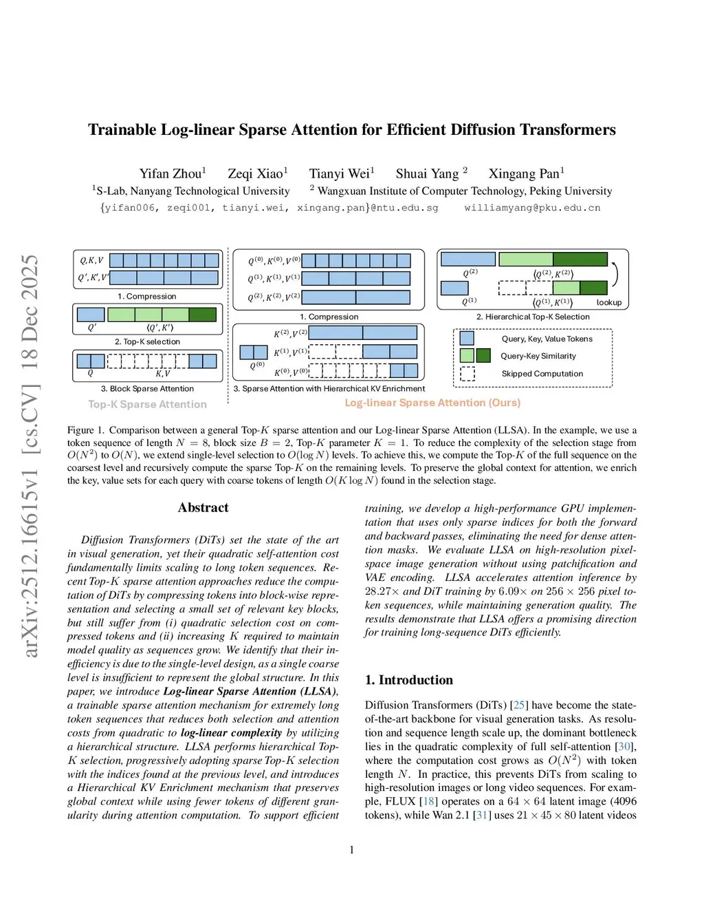 Trainable Log-linear Sparse Attention for Efficient Diffusion Transformers