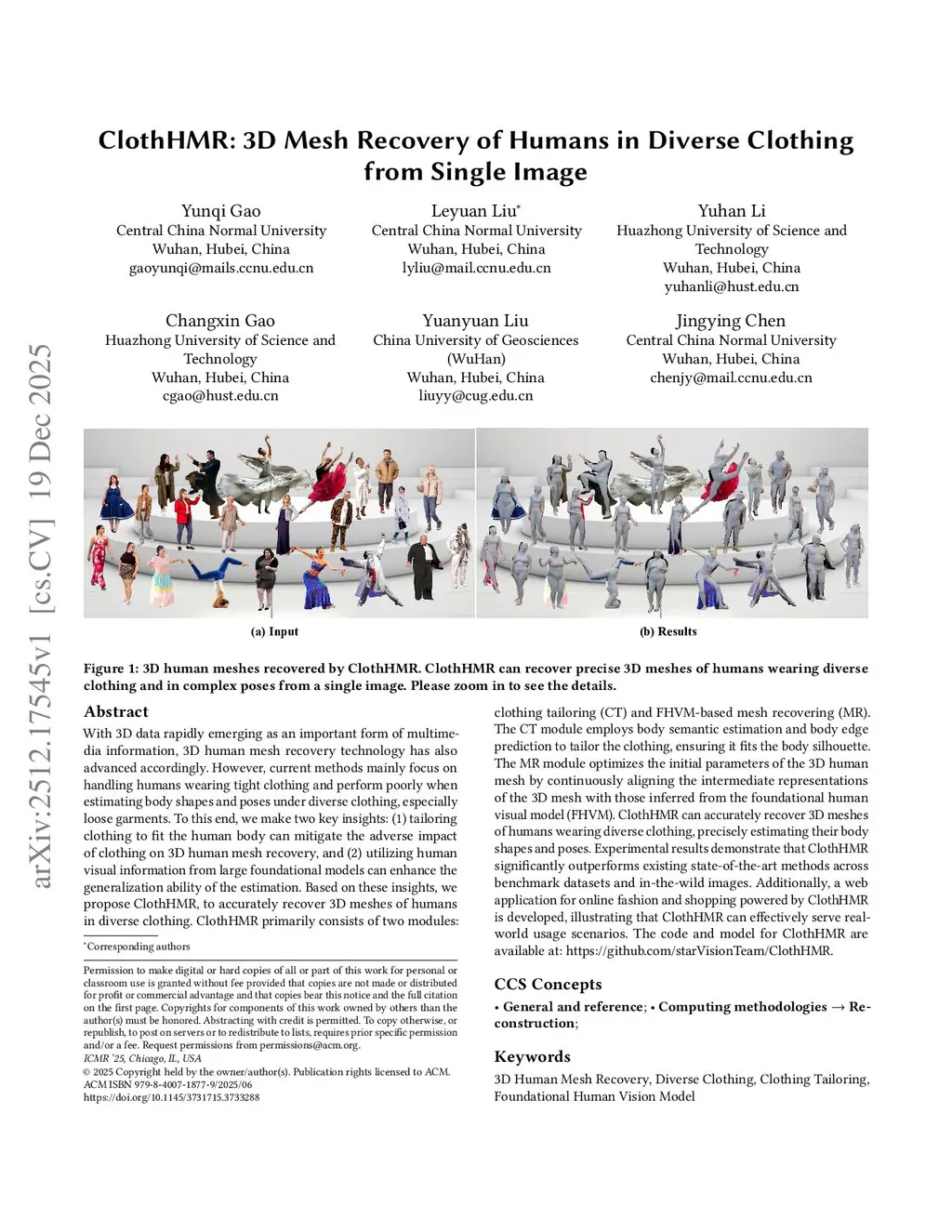 ClothHMR: 3D Mesh Recovery of Humans in Diverse Clothing from Single Image