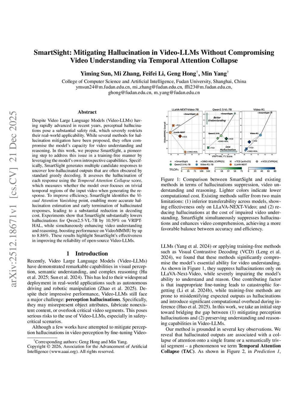 Despite Video Large Language Models having rapidly advanced in recent years, perceptual hallucinations pose a substantial safety risk, which severely restricts their real-world applicability. While several methods for hallucination mitigation have been proposed, they often compromise the model's capacity for video understanding and reasoning. In this work, we propose SmartSight, a pioneering step to address this issue in a training-free manner by leveraging the model's own introspective capabilities. Specifically, SmartSight generates multiple candidate responses to uncover low-hallucinated outputs that are often obscured by standard greedy decoding. It assesses the hallucination of each response using the Temporal Attention Collapse score, which measures whether the model over-focuses on trivial temporal regions of the input video when generating the response. To improve efficiency, SmartSight identifies the Visual Attention Vanishing point, enabling more accurate hallucination estimation and early termination of hallucinated responses, leading to a substantial reduction in decoding cost. Experiments show that SmartSight substantially lowers hallucinations for Qwen2.5-VL-7B by 10.59% on VRIPT-HAL, while simultaneously enhancing video understanding and reasoning, boosting performance on VideoMMMU by up to 8.86%. These results highlight SmartSight's effectiveness in improving the reliability of open-source Video-LLMs.