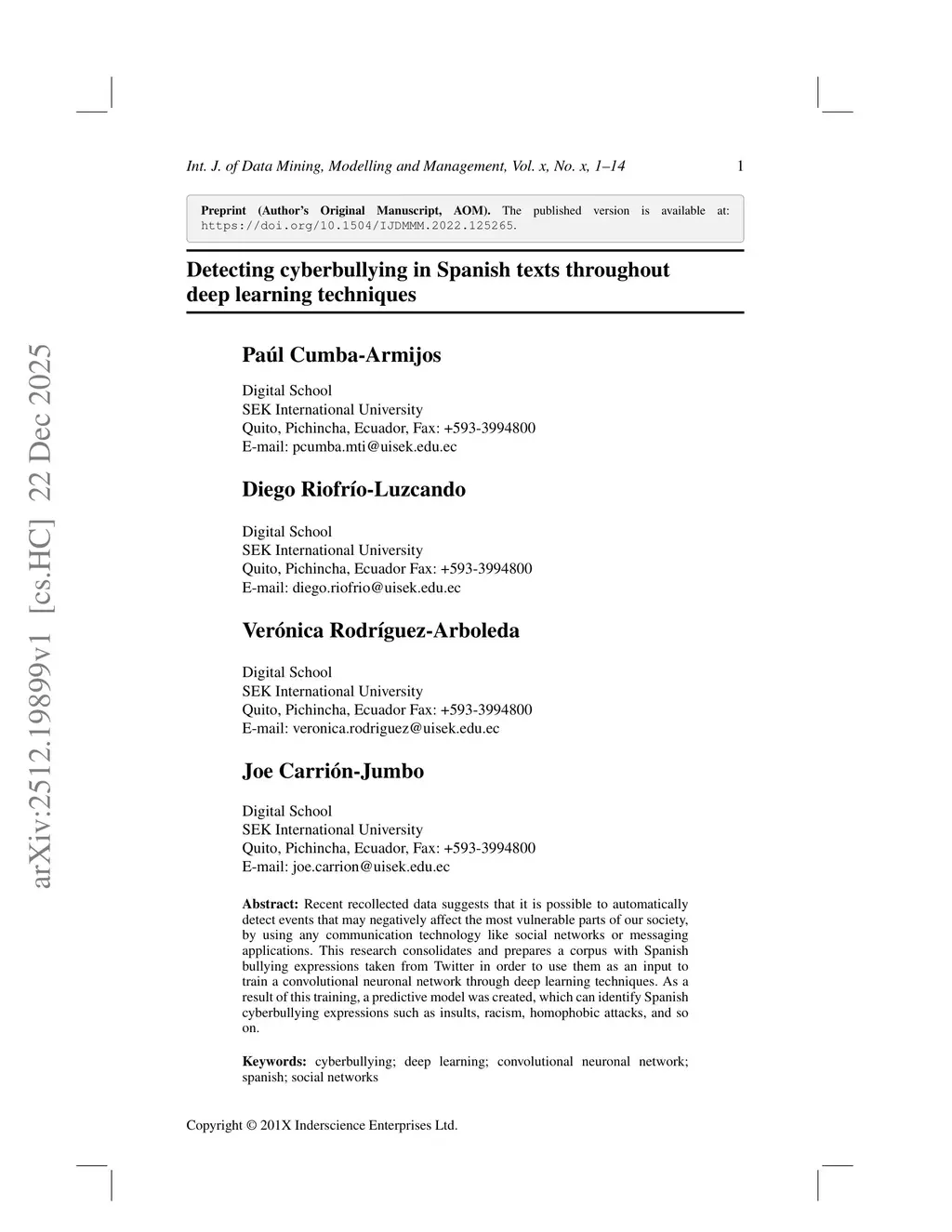 Detecting cyberbullying in Spanish texts through deep learning techniques