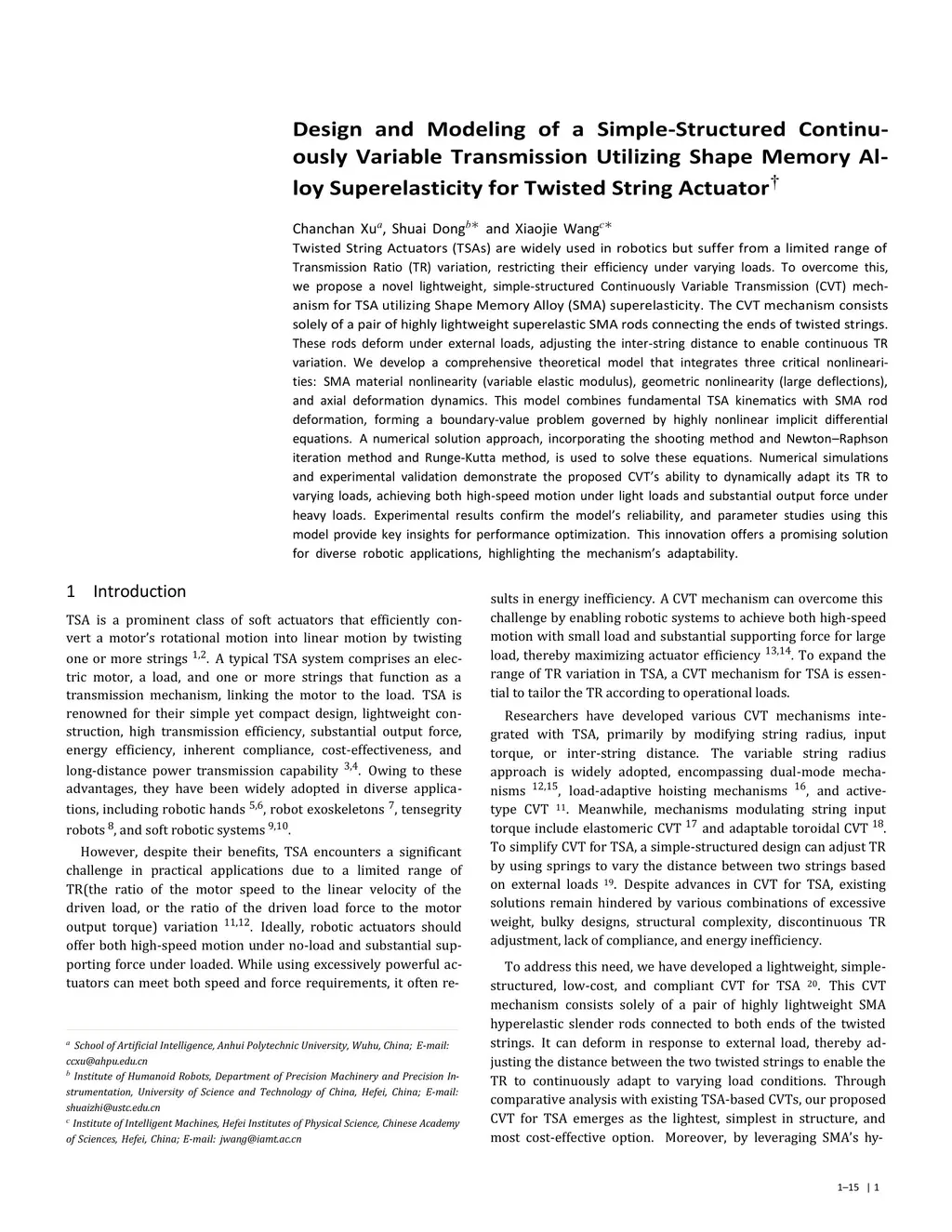 Design and Modeling of a Simple-Structured Continuously Variable Transmission Utilizing Shape Memory Alloy Superelasticity for Twisted String Actuator
