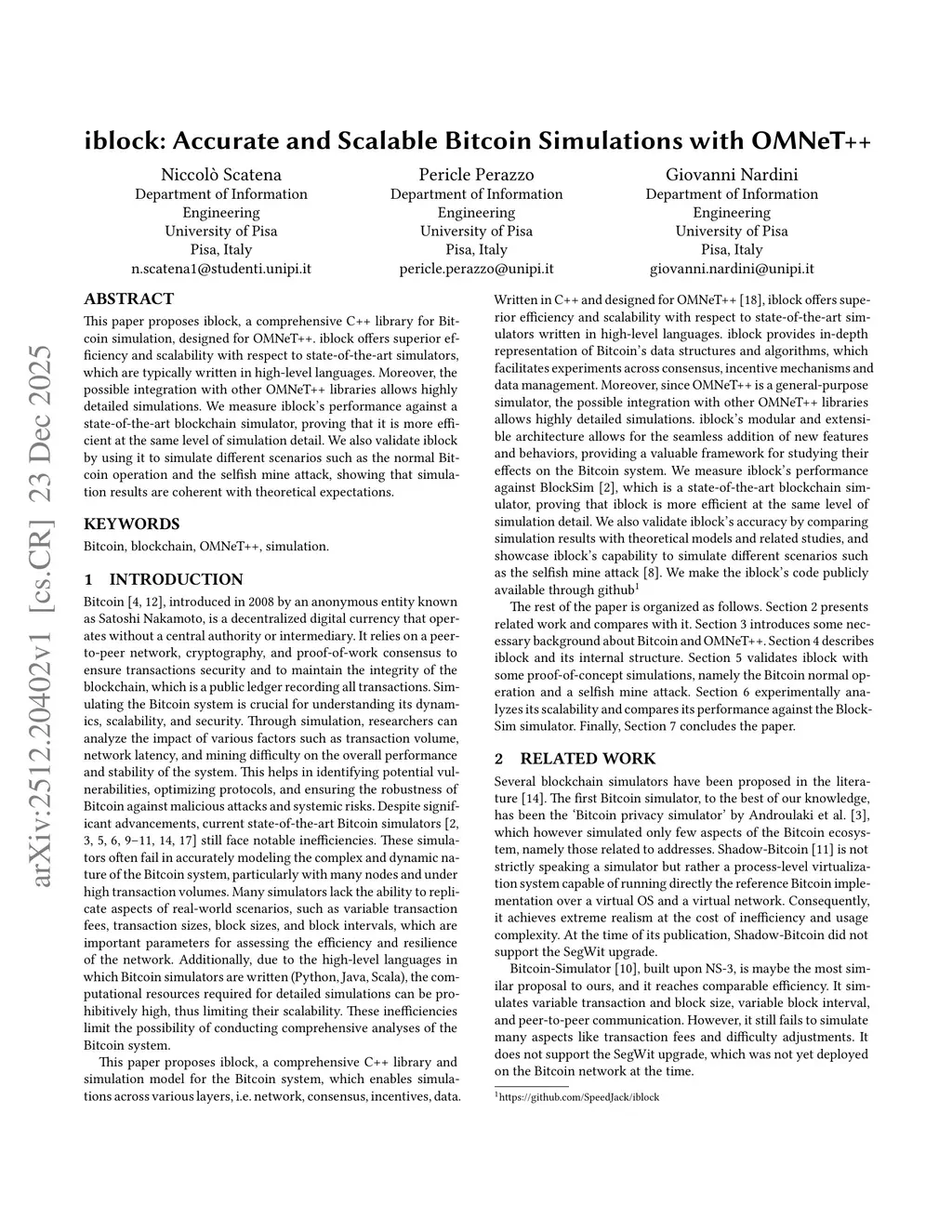 iblock: Accurate and Scalable Bitcoin Simulations with OMNeT++