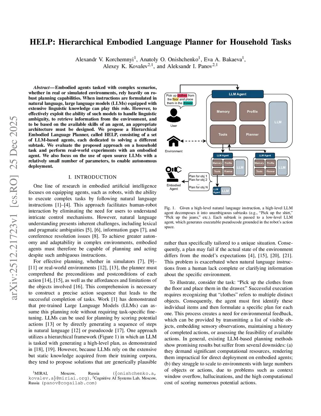 HELP: Hierarchical Embodied Language Planner for Household Tasks
