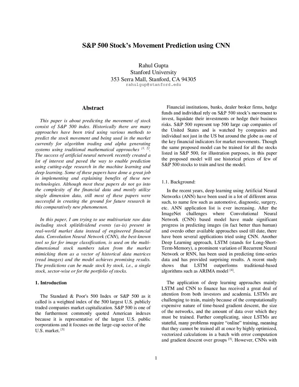 S&P 500 Stock's Movement Prediction using CNN