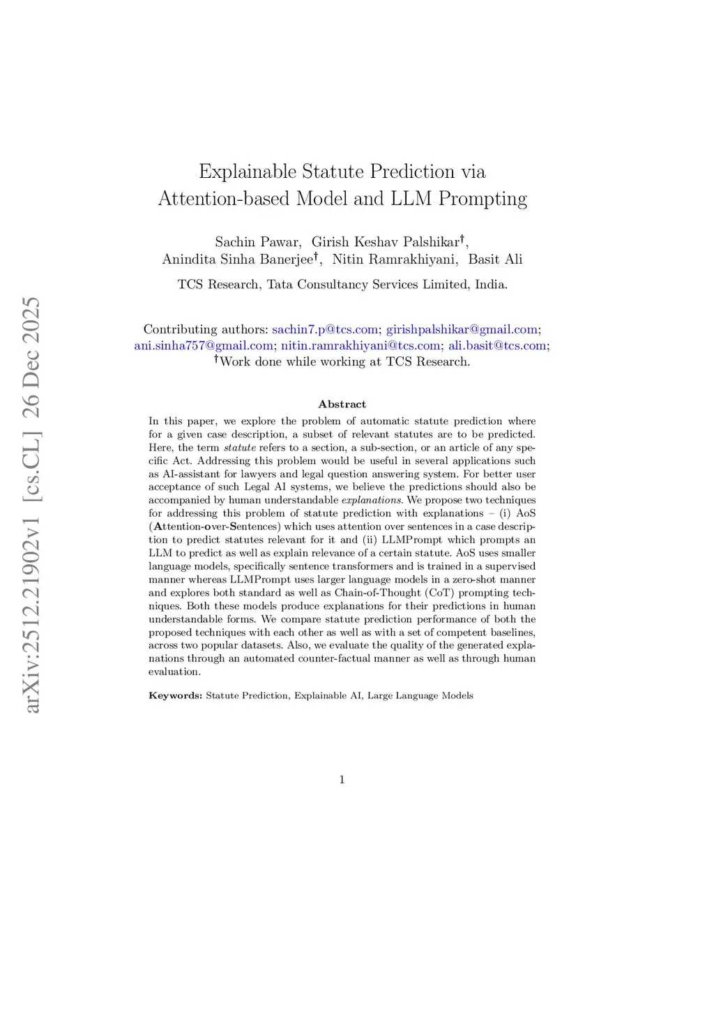 Explainable Statute Prediction via Attention-based Model and LLM Prompting
