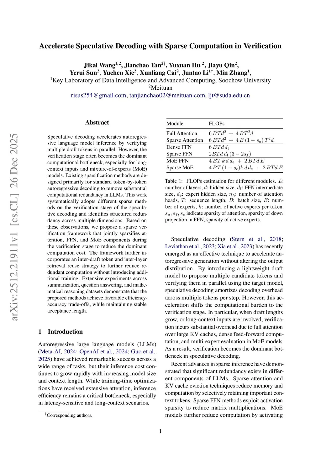 Accelerate Speculative Decoding with Sparse Computation in Verification