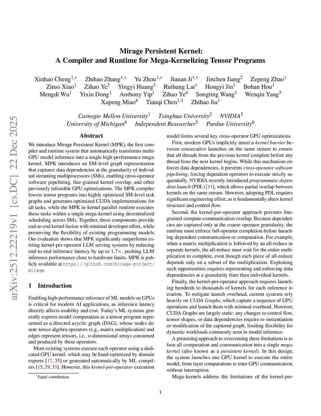 Mirage Persistent Kernel: A Compiler and Runtime for Mega-Kernelizing Tensor Programs