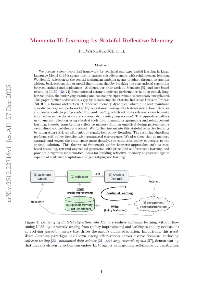 Memento 2: Learning by Stateful Reflective Memory