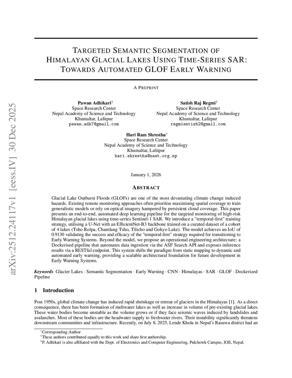 Targeted Semantic Segmentation of Himalayan Glacial Lakes Using Time-Series SAR: Towards Automated GLOF Early Warning