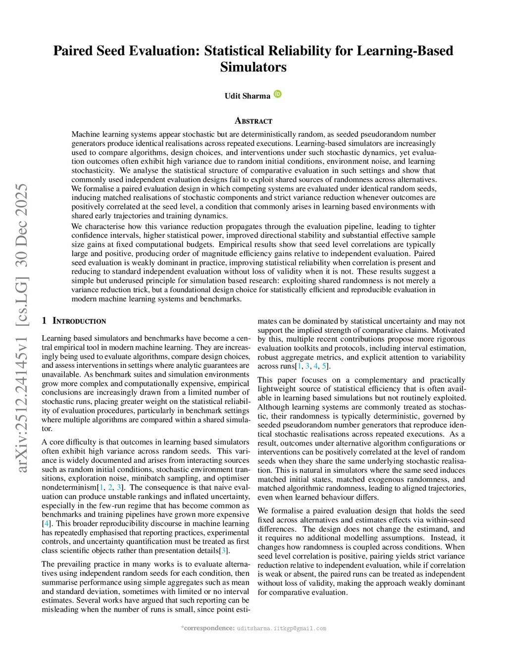 Machine learning systems appear stochastic but are deterministically random, as seeded pseudorandom number generators produce identical realisations across repeated executions. Standard evaluation practice typically treats runs across alternatives as independent and does not exploit shared sources of randomness. This paper analyses the statistical structure of comparative evaluation under shared random seeds. Under this design, competing systems are evaluated using identical seeds, inducing matched stochastic realisations and yielding strict variance reduction whenever outcomes are positively correlated at the seed level. We demonstrate these effects using an extended learning-based multi-agent economic simulator, where paired evaluation exposes systematic differences in aggregate and distributional outcomes that remain statistically inconclusive under independent evaluation at fixed budgets.