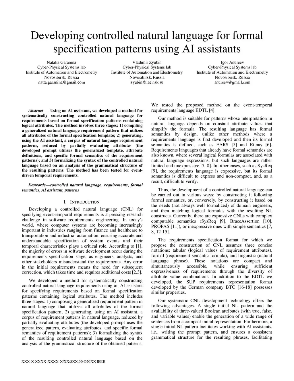 Developing controlled natural language for formal specification patterns using AI assistants