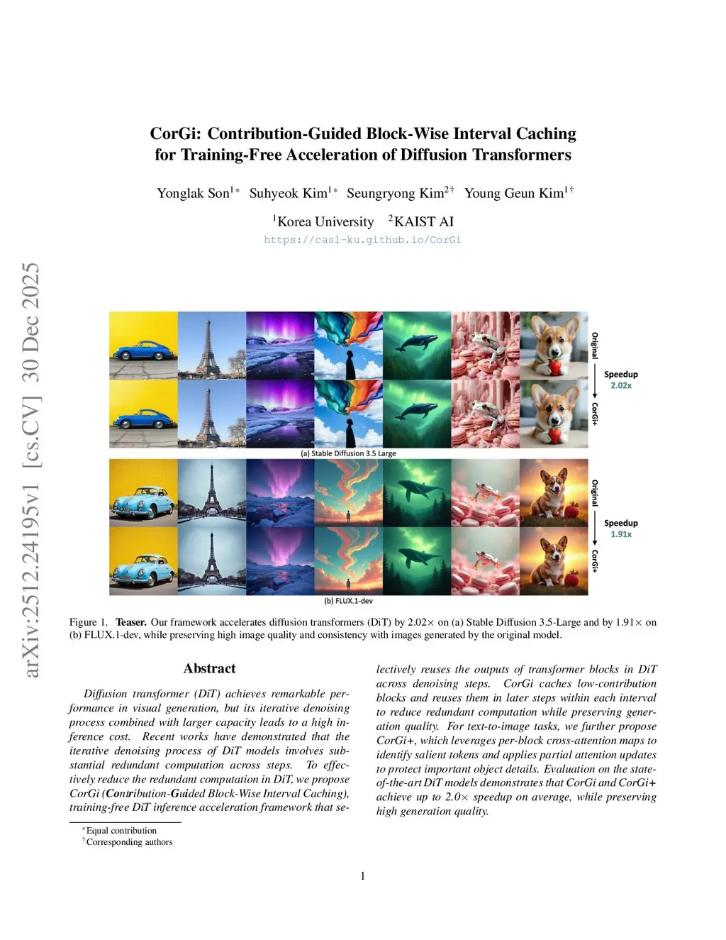 CorGi: Contribution-Guided Block-Wise Interval Caching for Training-Free Acceleration of Diffusion Transformers