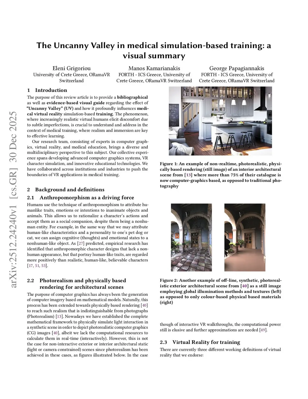The purpose of this review article is to provide a bibliographical as well as evidence-based visual guide regarding the effect of ``Uncanny Valley'' (UV) and how it profoundly influences medical virtual reality simulation-based training. The phenomenon, where increasingly realistic virtual humans elicit discomfort due to subtle imperfections, is crucial to understand and address in the context of medical training, where realism and immersion are key to effective learning.Our research team, consisting of experts in computer graphics, virtual reality, and medical education, brings a diverse and multidisciplinary perspective to this subject. Our collective experience spans developing advanced computer graphics systems, VR character simulation, and innovative educational technologies. We have collaborated across institutions and industries to push the boundaries of VR applications in medical training.